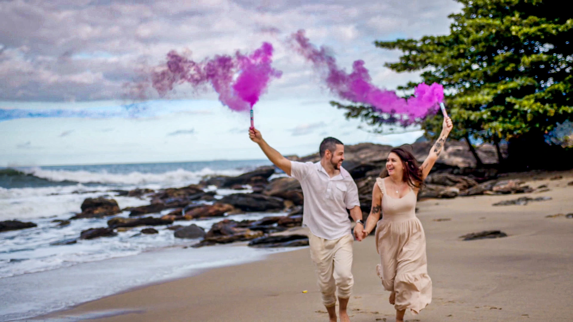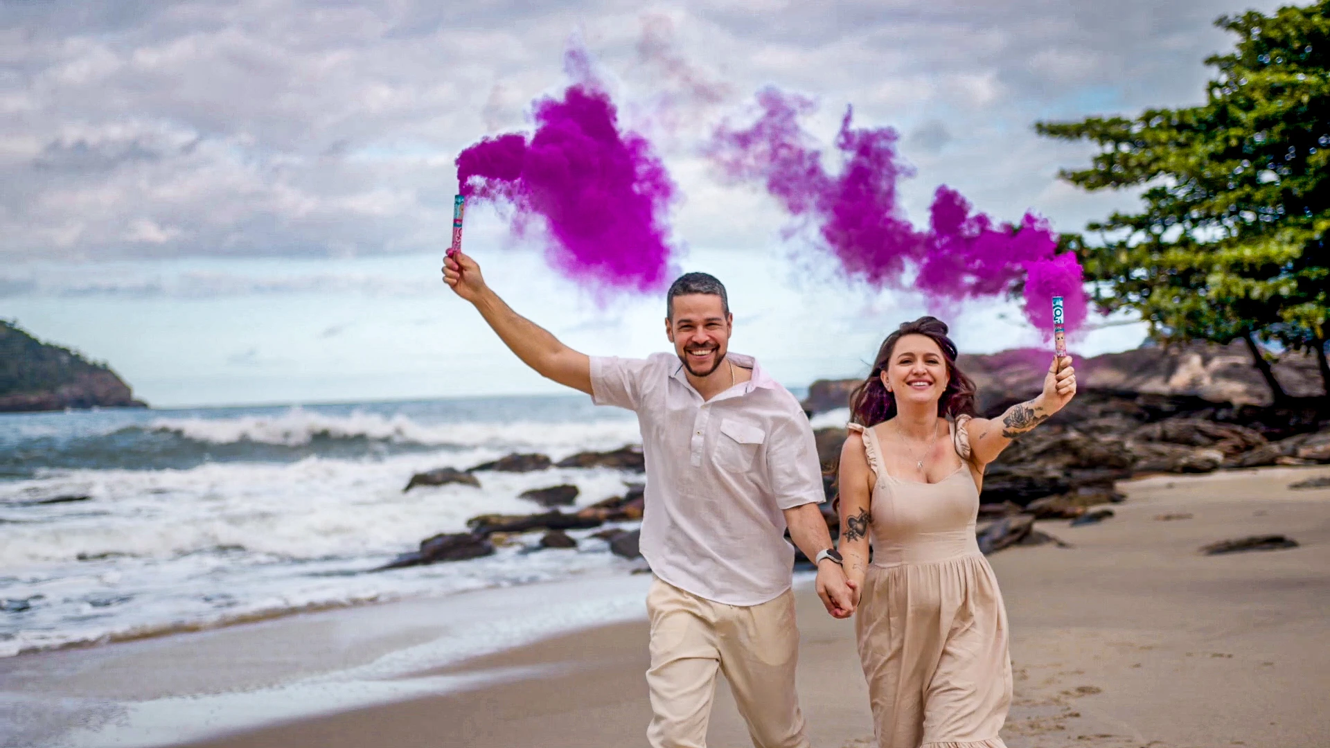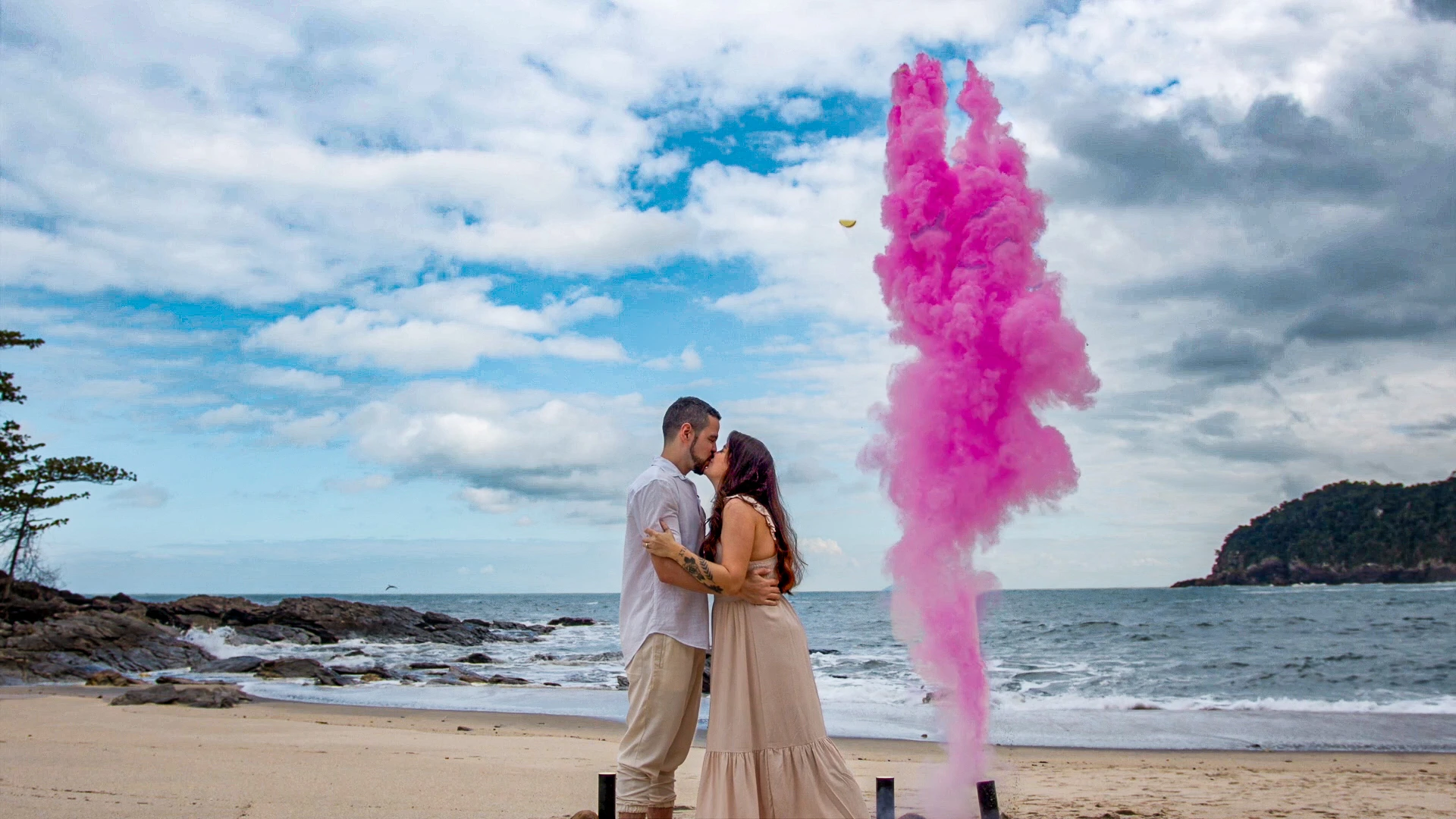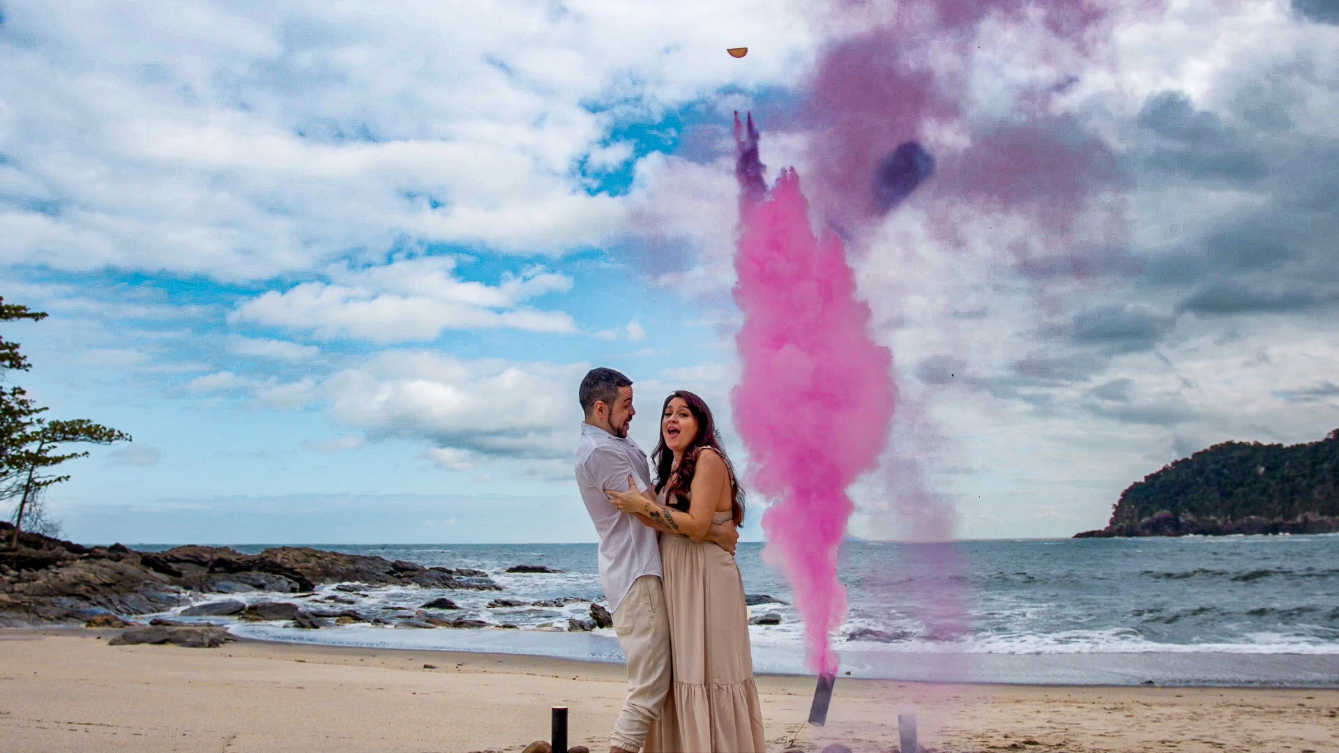 Nas paisagens deslumbrantes da Praia de Calhetas, no litoral norte de São Paulo, produzimos um filme de revelação com linguagem cinematográfica para eternizar o momento de Giovanna e André. Com narrativa sensível, trilha sonora envolvente e composição de enquadramentos que valorizam a conexão do casal, o ponto alto do filme é a explosão de fumaça rosa revelando a chegada de uma menina. Cenas em movimento, detalhes captados com delicadeza e imagens aéreas com drone compõem um filme emocionante, feito para ser lembrado como um verdadeiro capítulo de cinema na história da família.